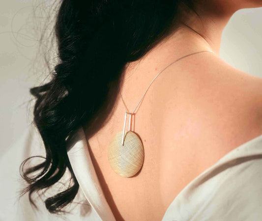 Dona Doble – Halskette aus Silber und Garn, inspiriert von kolumbianischer Flechtkunst