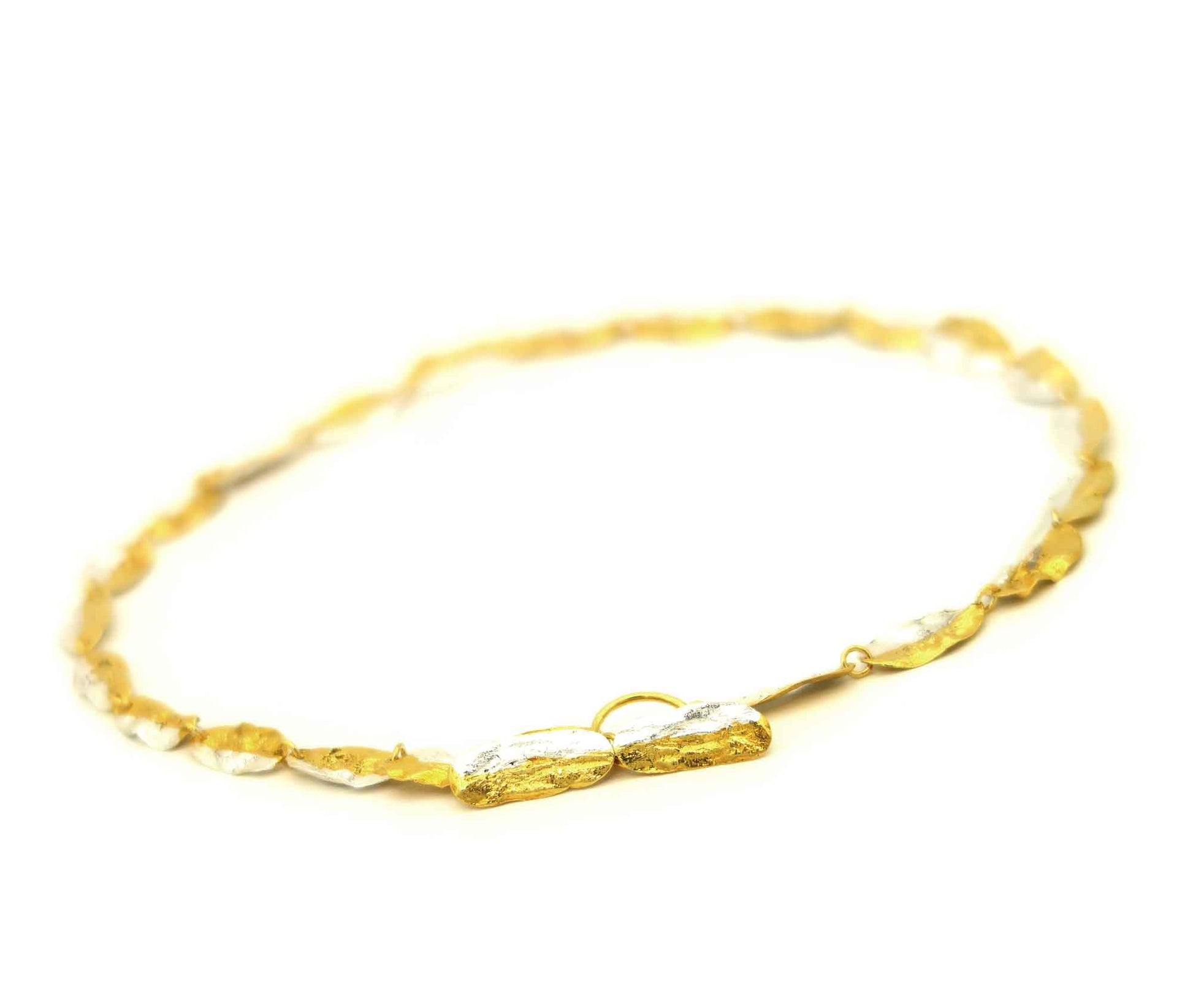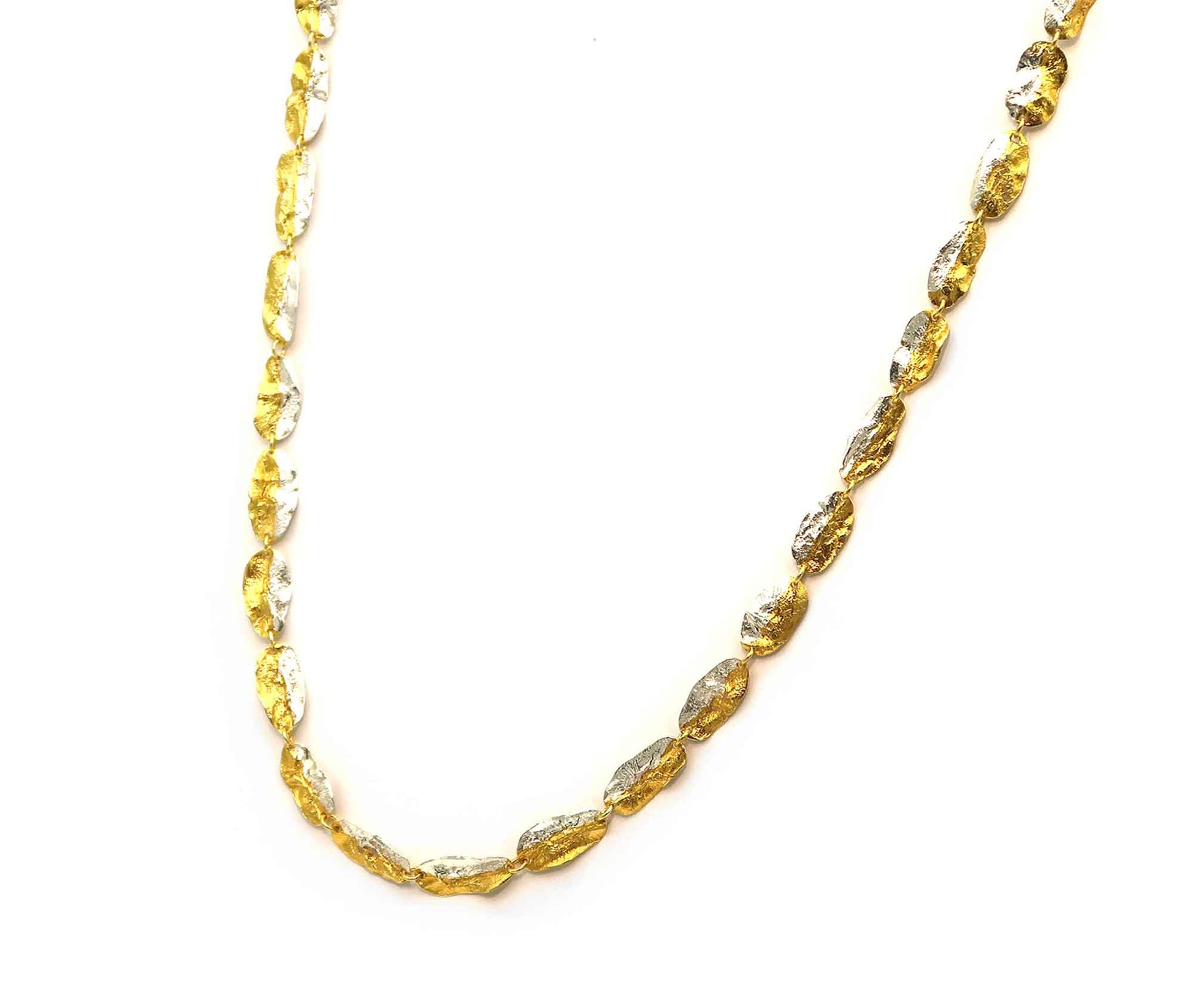 Die feinen Samenelemente schmiegen sich sanft an deine Haut. Silber und Gold spielen miteinander wie Schatten und Licht – zurückhaltend und zugleich strahlend. Mit einem Gewicht von ca. 13,5 g liegt die Kette spürbar, aber angenehm leicht auf der Haut. Jedes Element bewahrt seine organische Struktur – wie ein leises Erinnerungsstück, das dich den ganzen Tag begleitet.