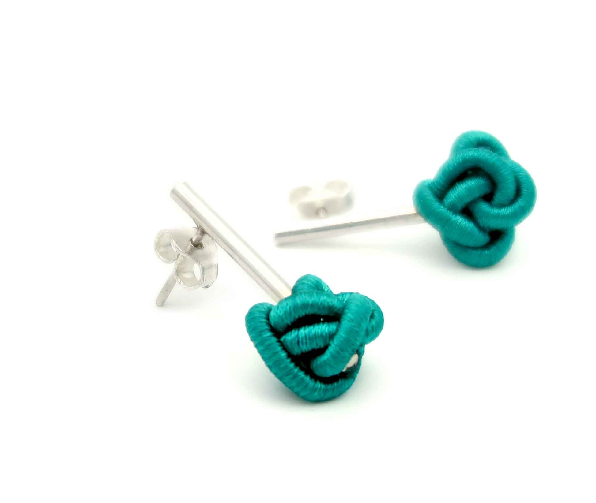 Mit nur ca. 1,7 g pro Ohrring liegen die „Palito Enredo“ kaum spürbar am Ohr – und ziehen dennoch Blicke auf sich. Der seidige Glanz der grünen Fäden erinnert an Pflanzenfasern im Sonnenlicht, während die matte Oberfläche des Silbers Ruhe ausstrahlt. Asymmetrische Knoten machen jedes Paar zum Unikat – eine stille, aber präsente Geste, die Leichtigkeit mit Tiefe verbindet.