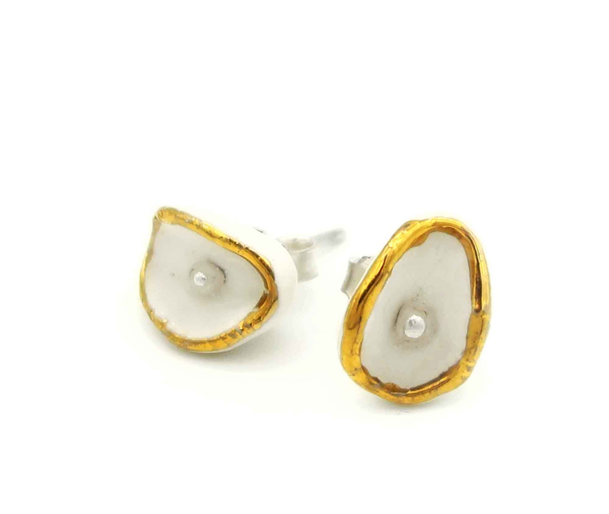 Radiolarias pequeñas – Porzellan-Ohrstecker mit Goldlinie