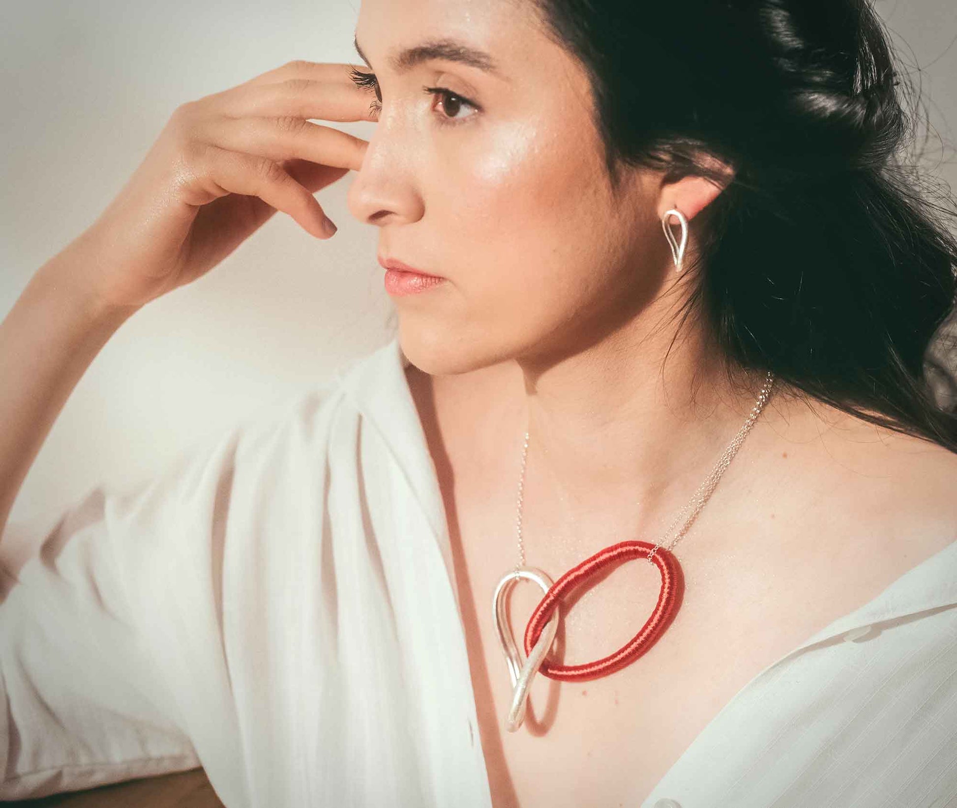 „Vínculo“ – das spanische Wort für Verbindung – fängt ein, was uns trägt: Beziehungen, Erinnerungen, Zugehörigkeit. Die sanft geschwungenen Linien aus Silber umrahmen das Gesicht mit schlichter Eleganz und verleihen dem Ohr eine feine Präsenz. Ihre klare Formensprache wirkt präzise und zugleich leicht – wie ein stiller Dialog zwischen Beständigkeit und Zartheit. Diese Ohrringe sind kein lauter Schmuck, sondern eine stille Botschaft: über Bindung, Zusammenhalt und das, was bleibt.